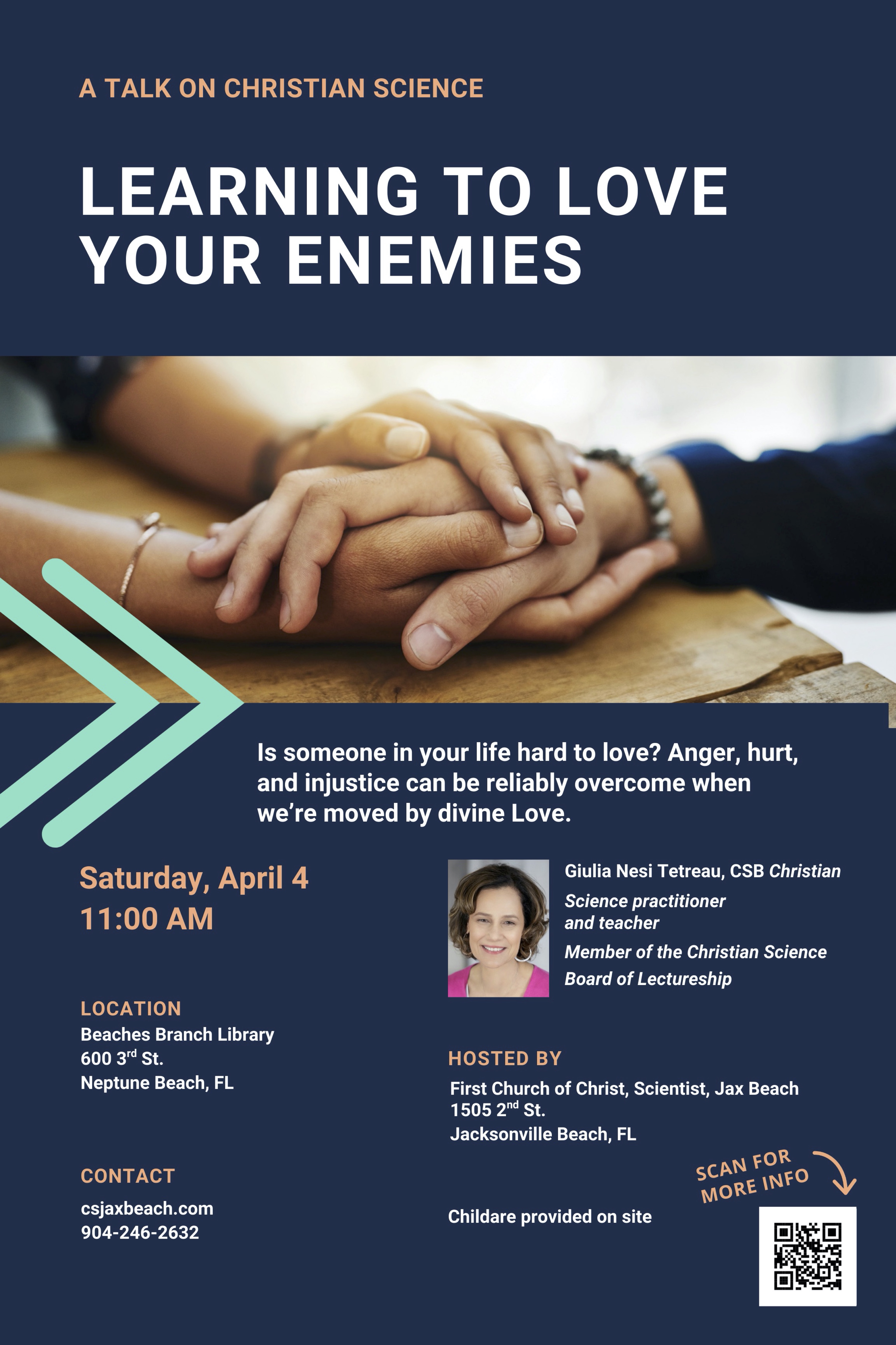 Our Reading Room, a Christian Science bookstore, library, and spiritual outpost, is located inside our church. The Reading Room is open Wednesday evenings from 5-6 pm, the 1st Saturday of each month from 1-3 pm, Sunday after the service, or by appointment. Please call 904-797-8882 x1 to schedule study time at the Reading Room or to purchase an item off regular hours.