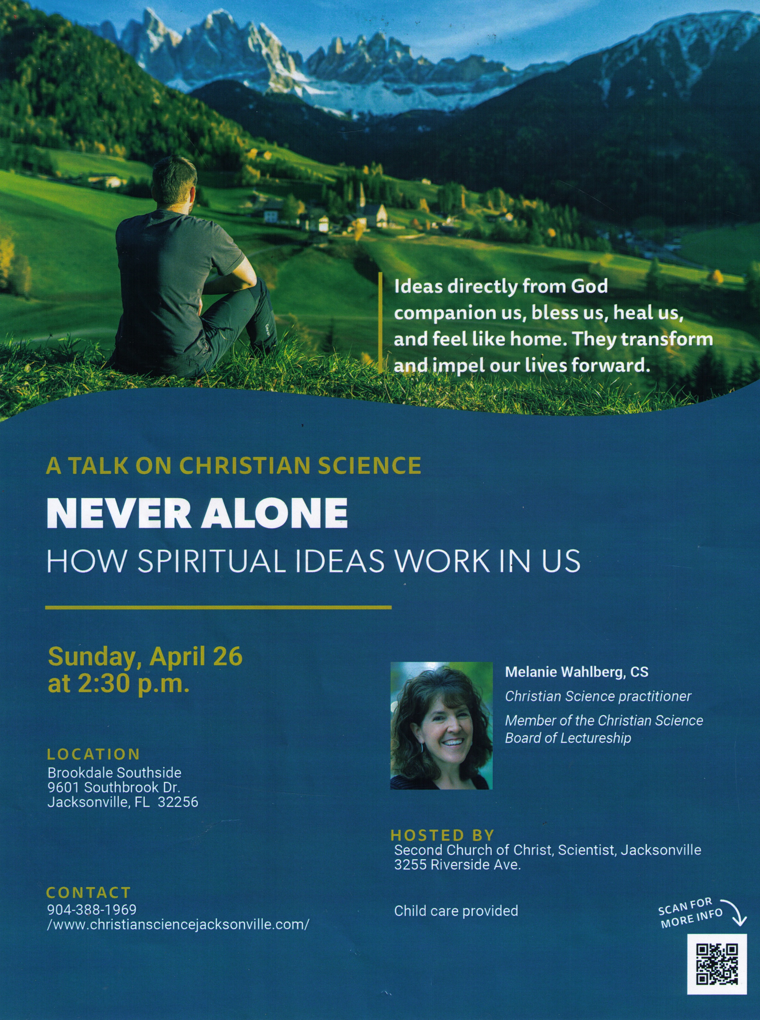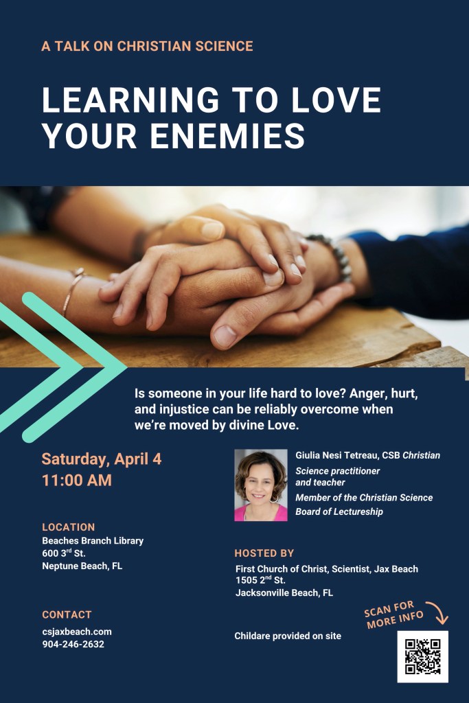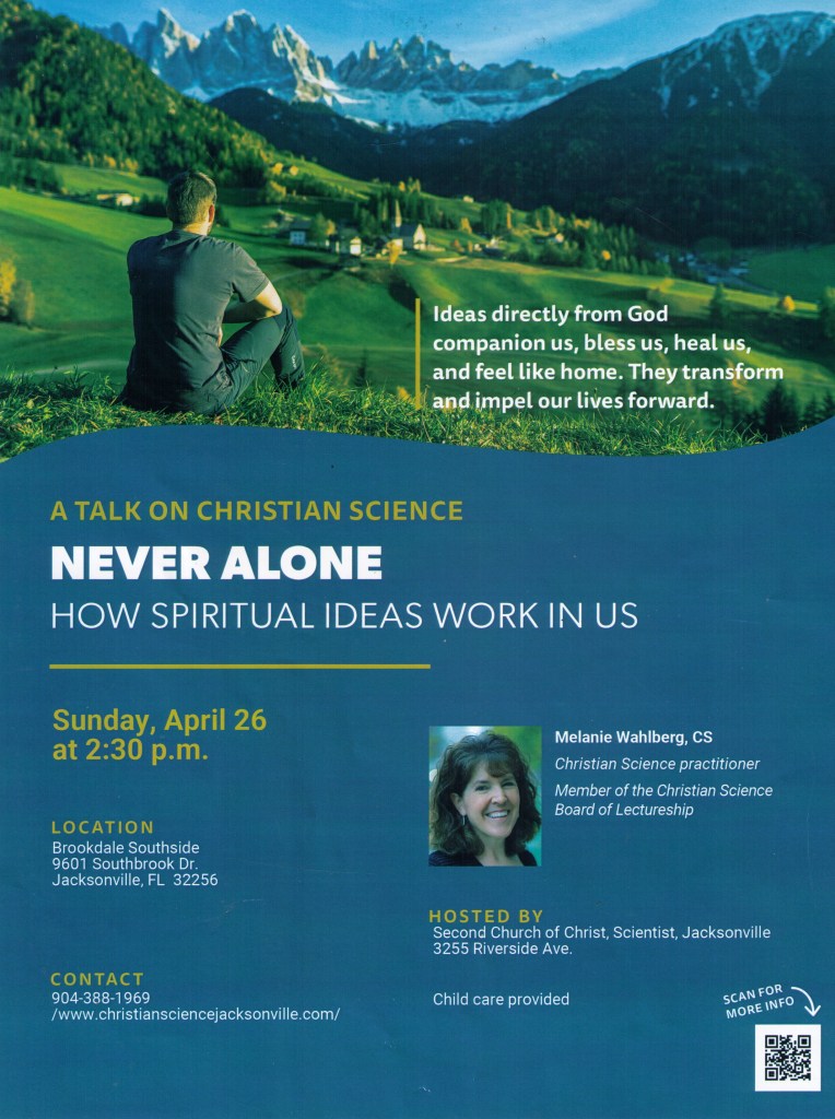 Church is a call to worship in community. In church, we hear and cherish the Word of God. We find comfort and release from oppressive fear, anxiety, disorder, and the world’s constant suggestions of disease. We greet each other in love and in witness to spiritual truth. Our collective spiritual understanding is powerful indeed to break the dreams of sickness, sin, and death. Fear has no place, cannot even exist, where consciousness is filled with thoughts from God, divine Love.